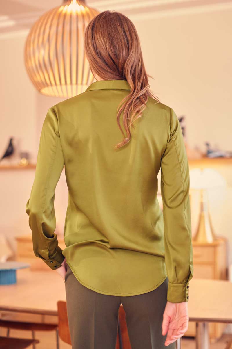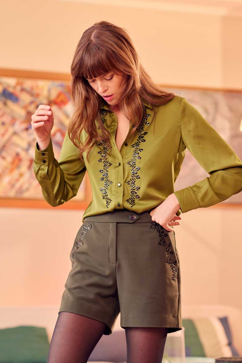 •Chemise boutonnée, manches longues, avec transferts verticaux très graphiques le long du boutonage, souplesse et confort du lycra