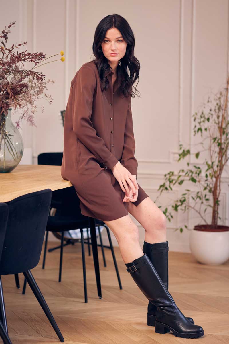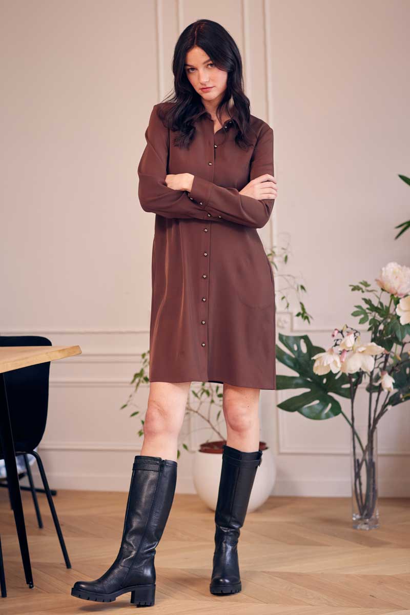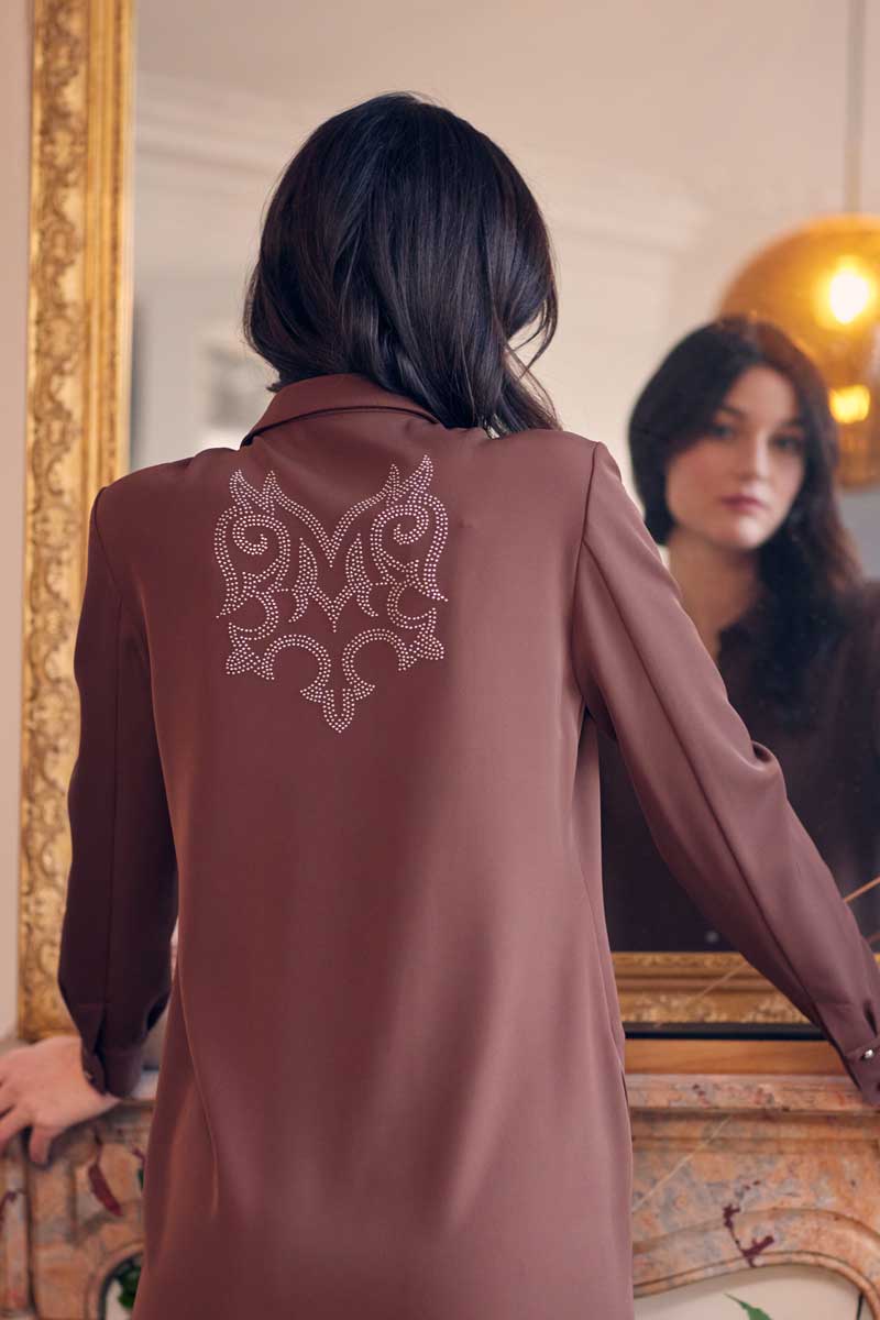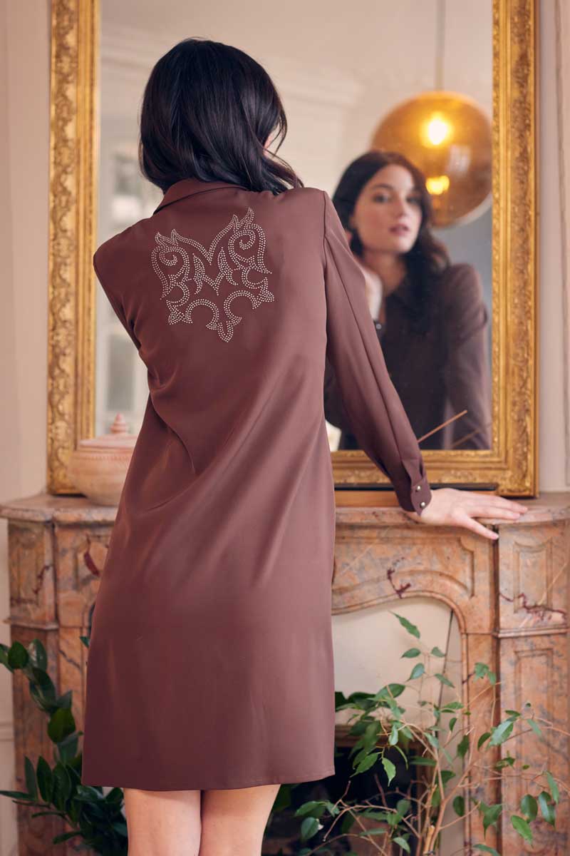 •Robe chemise manches longues avec de très jolis boutons métal et transfert graphique dans le dos