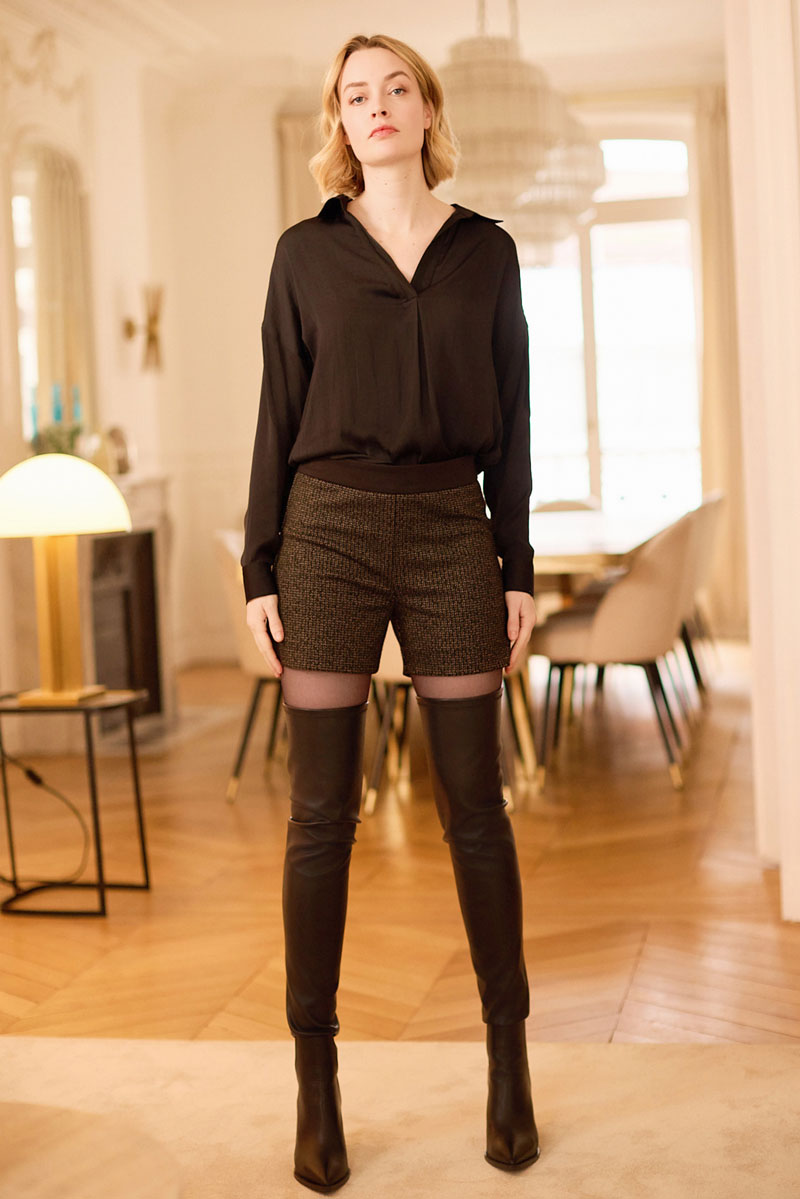 •Maille jacquard d'une texture pleine et d'une douceur extrême pour ce short ultra mode, bouton fantaisie