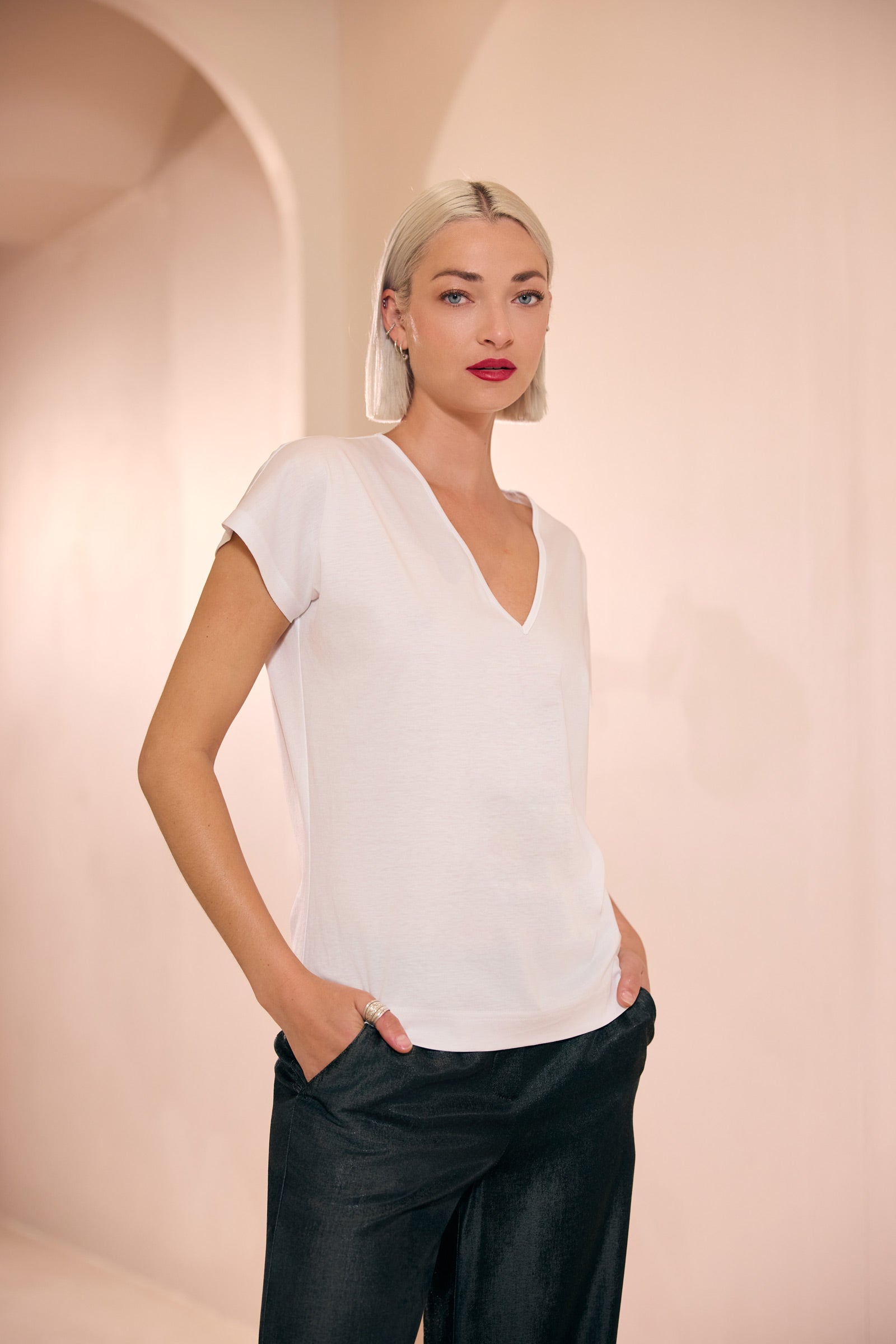 Très belle qualité naturelle en maille viscose coton pour ce tee shirt