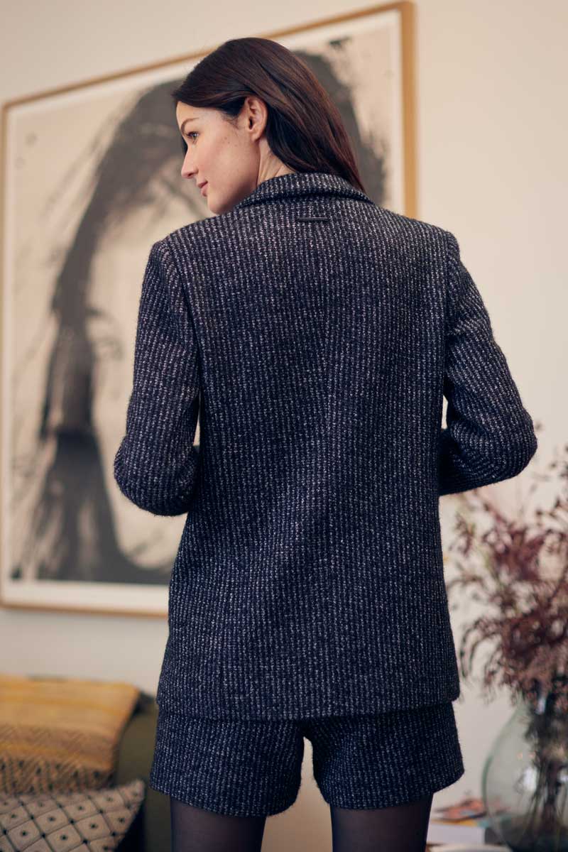 •Veste homme ample, coupée dans une maille façon tweed aux couleurs bleu noir, poches plaquées, ultra mode et ultra confort