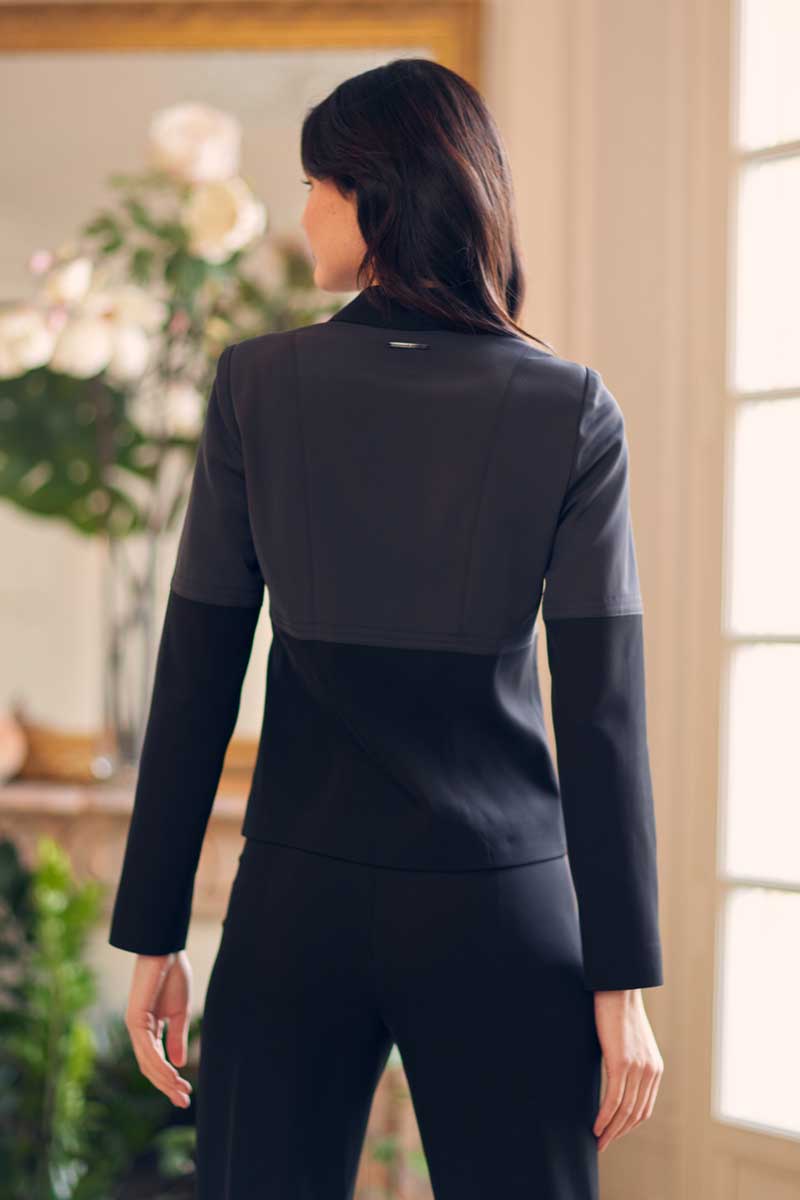 •Veste courte bicolore gris noir réalisée dans une très belle matière technique souple, zip italien aux poches